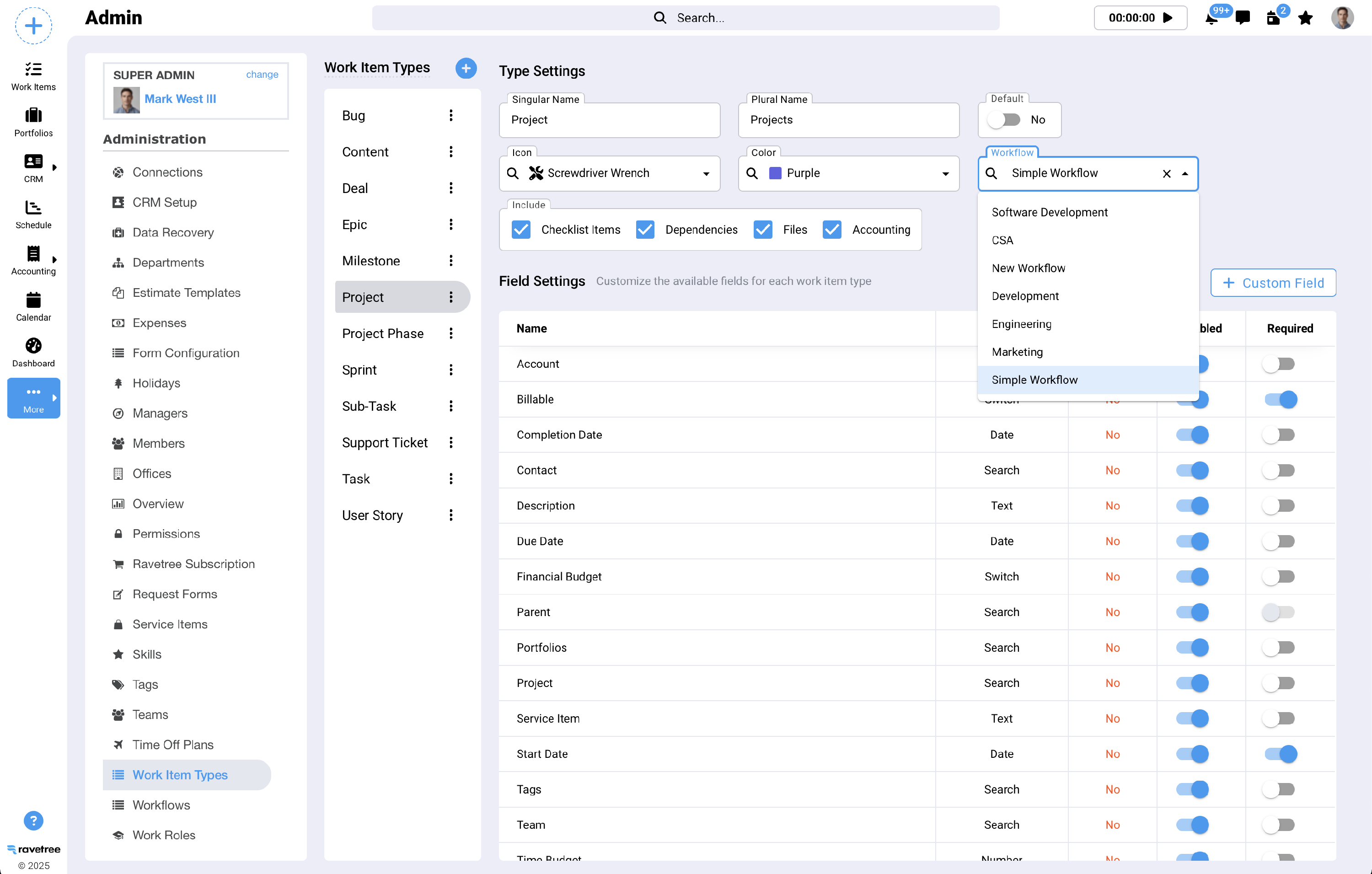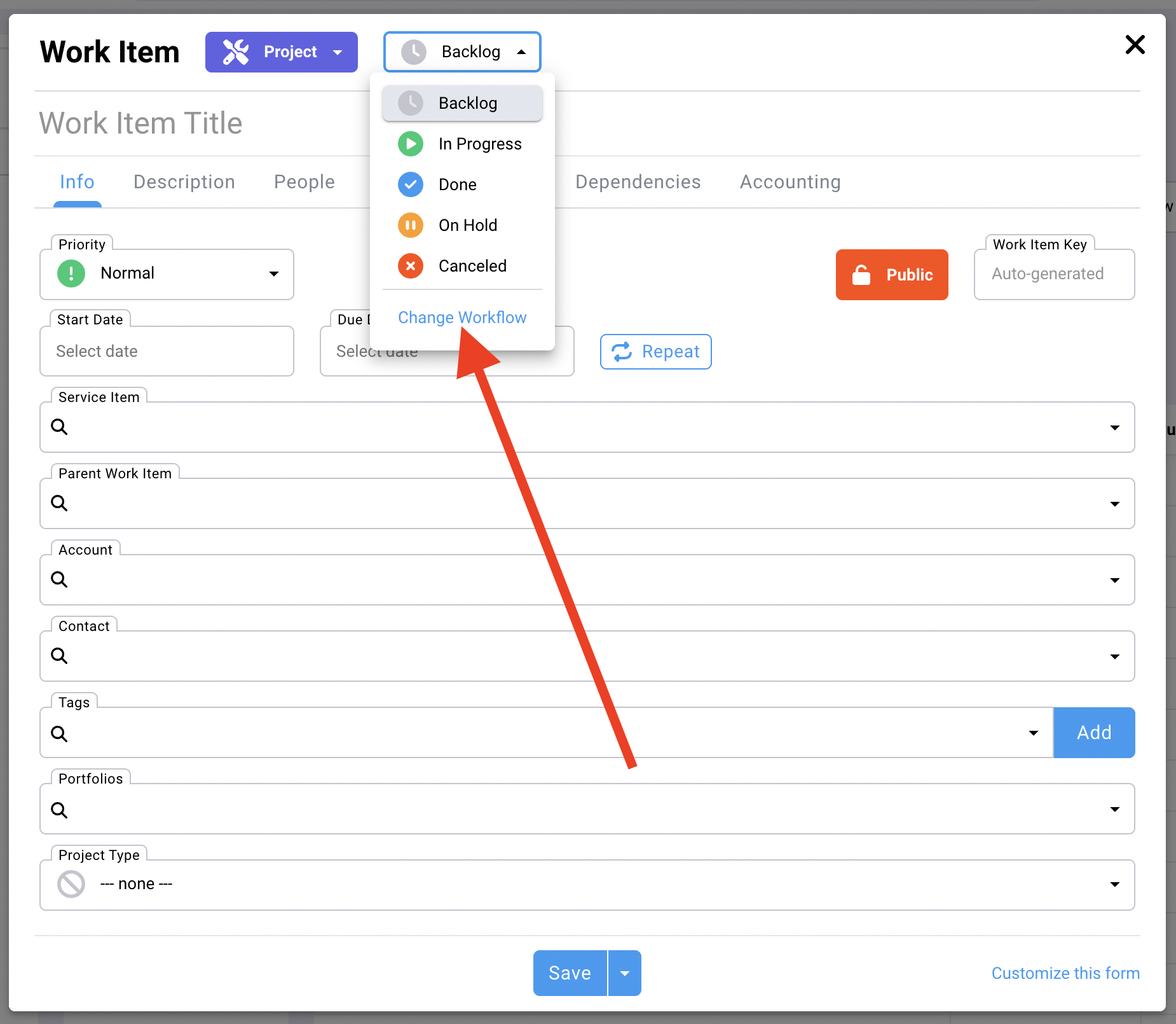 In the above screenshot you can see that we have selected the "Simple Workflow" for the "Project" work item type. Anytime we create a new "Project" type work item it will use the Simple Workflow by default.