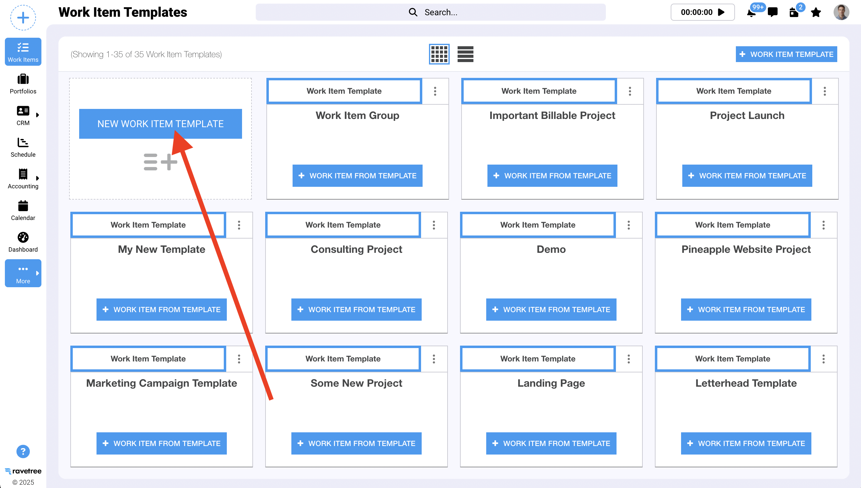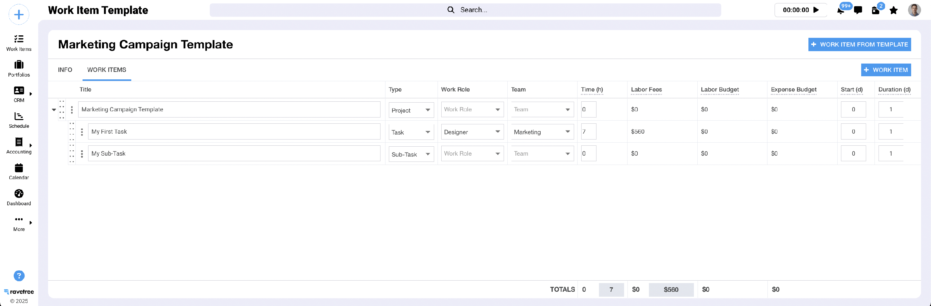 Then, click on the "Work Items" tab to start entering the work items that you want to be generated whenever you use this template: