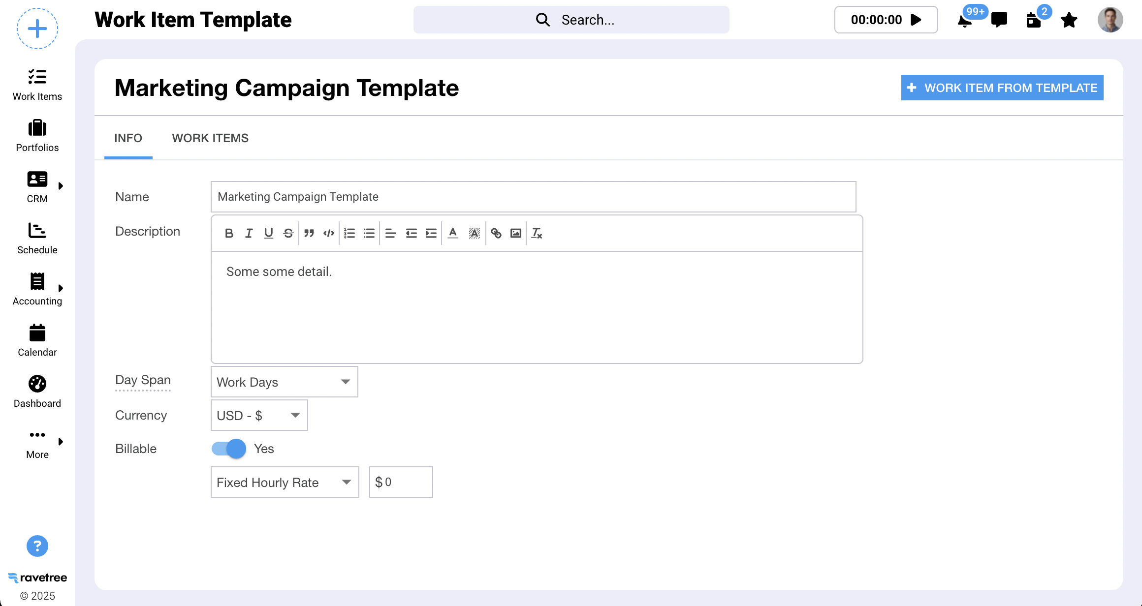 The "Duration" field is used to determine the end date of the work item generated from the template. Using the above example, if you entered "0" for the "Start" date and set the "Duration" to 3 (i.e, 3 days), then its end date would be June 3, 2025.