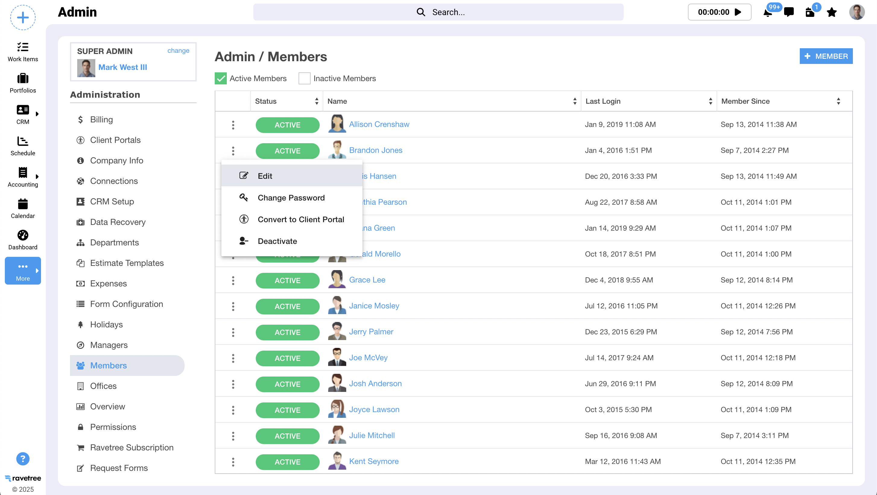 To assign a permission role to a user go to the Admin/Members page and click the 3 dots menu next to their name to edit their member settings: