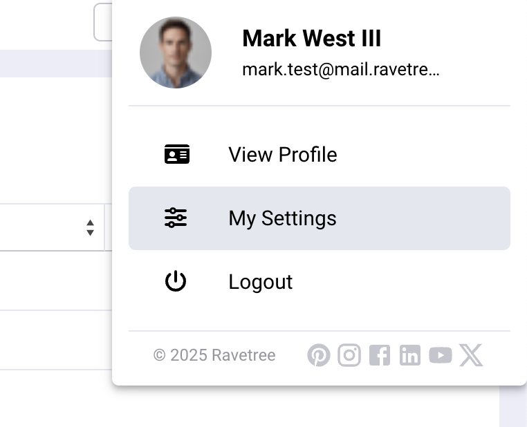 How To Access Your User Settings To access your user settings click on your user icon in the upper right and then select "My Settings."